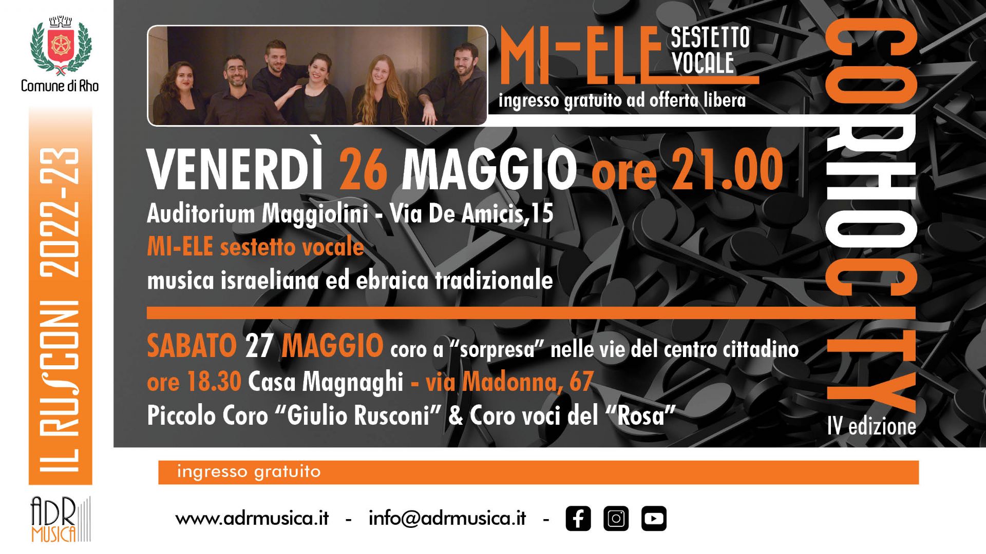 Il centro di Rho sta per risuonare di voci e canti! Venerdì e sabato si terrà la quarta edizione di CorhoCity, una produzione ADRmusica, direzione artistica di Marco Pisoni, con il patrocinio del Comune di Rho.