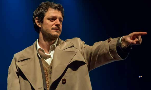 proprio vissuto […]. Emerge lo strato profondo che un autore immensamente grande come Pavese ha voluto rappresentare: il senso della vita, l’andarsene, il tornare, l’essere straniero, il bisogno di una identità radicata che si rifletta nelle persone, nei luoghi, che ci hanno visto diventare uomini. (Paolo Briguglia) di Cesare Pavese / adattamento dal romanzo di Andrea Bosca e Paolo Briguglia / con Andrea Bosca / regia Paolo Briguglia / luci Marco Catalucci / costumi Tommaso Lagattolla / assistente ai costumi Donato Didonna / foto di scena Franco Rabino / visual Chiara Maria Baire / foto Laura Farneti / produzione BAM teatro