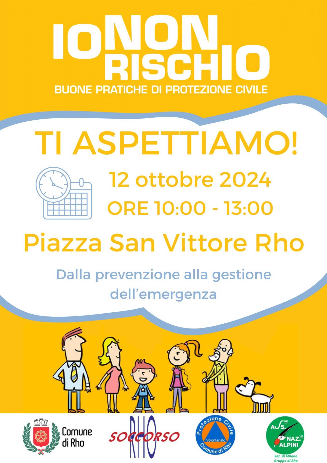 “Io non rischio – buone pratiche di protezione civile” è la campagna dedicata alla cultura della prevenzione dei rischi attiva su scala nazionale. A Rho l’appuntamento è previsto per sabato 12 ottobre 2024 dalle ore 10.00 alle ore 13.00 in piazza San Vittore
