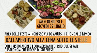 Si torna a far festa in via de Amicis. Nell’area polifunzionale ci si prepara infatti a una serie di eventi estivi, a cominciare da mercoledì 28 e giovedì 29 luglio con due serate dedicate al buon cibo e allo stare insieme. L’iniziativa “Dall’aperitivo alla cena sotto le stelle”, patrocinata da Comune di Rho e Confcommercio Rho, è supportata da diversi commercianti, che stanno preparando un evento ricco di sorprese.