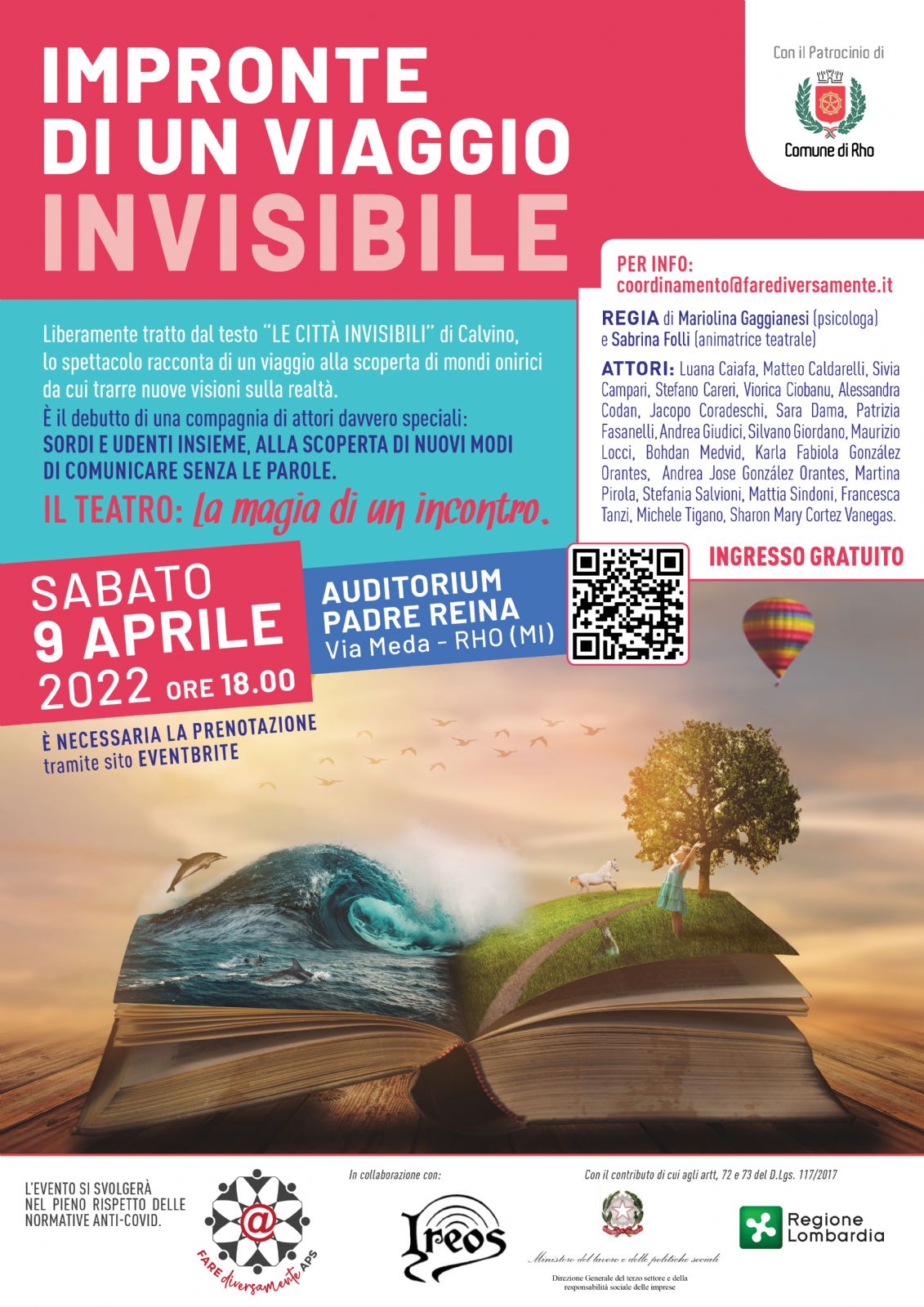 Sabato 9 aprile 2022, ore 18.00 presso l'Auditorium Padre Reina di via Meda, Rho Informazioni sull'evento Liberamente tratto dal testo "LE CITTÀ INVISIBILI" di Italo Calvino, lo spettacolo racconta di un viaggio alla scoperta di mondi onirici da...