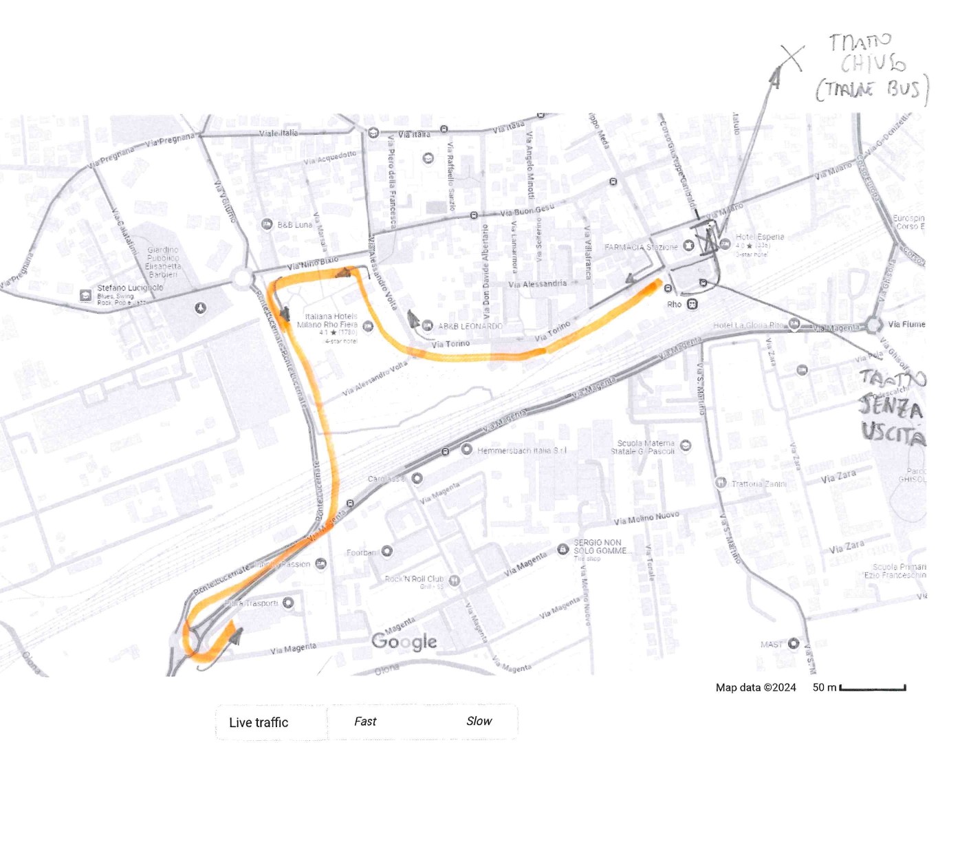 - la deviazione del traffico privato sull’itinerario di aggiramento come segue: via Torino, via Volta , via Bixio , cavalcavia Volturno , via Magenta;