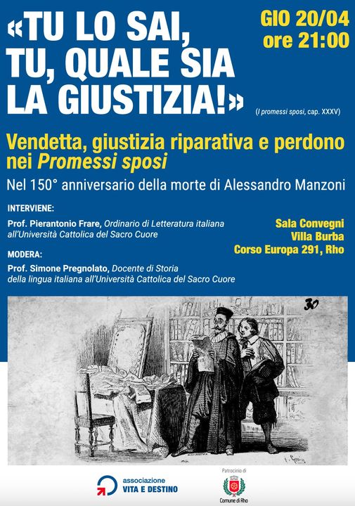 Il seminario guarderà ai Promessi Sposi nell’ottica delle varie e diverse forme di giustizia che si possono ritrovare al suo interno: la vendetta, la giustizia riparativa, il perdono.
