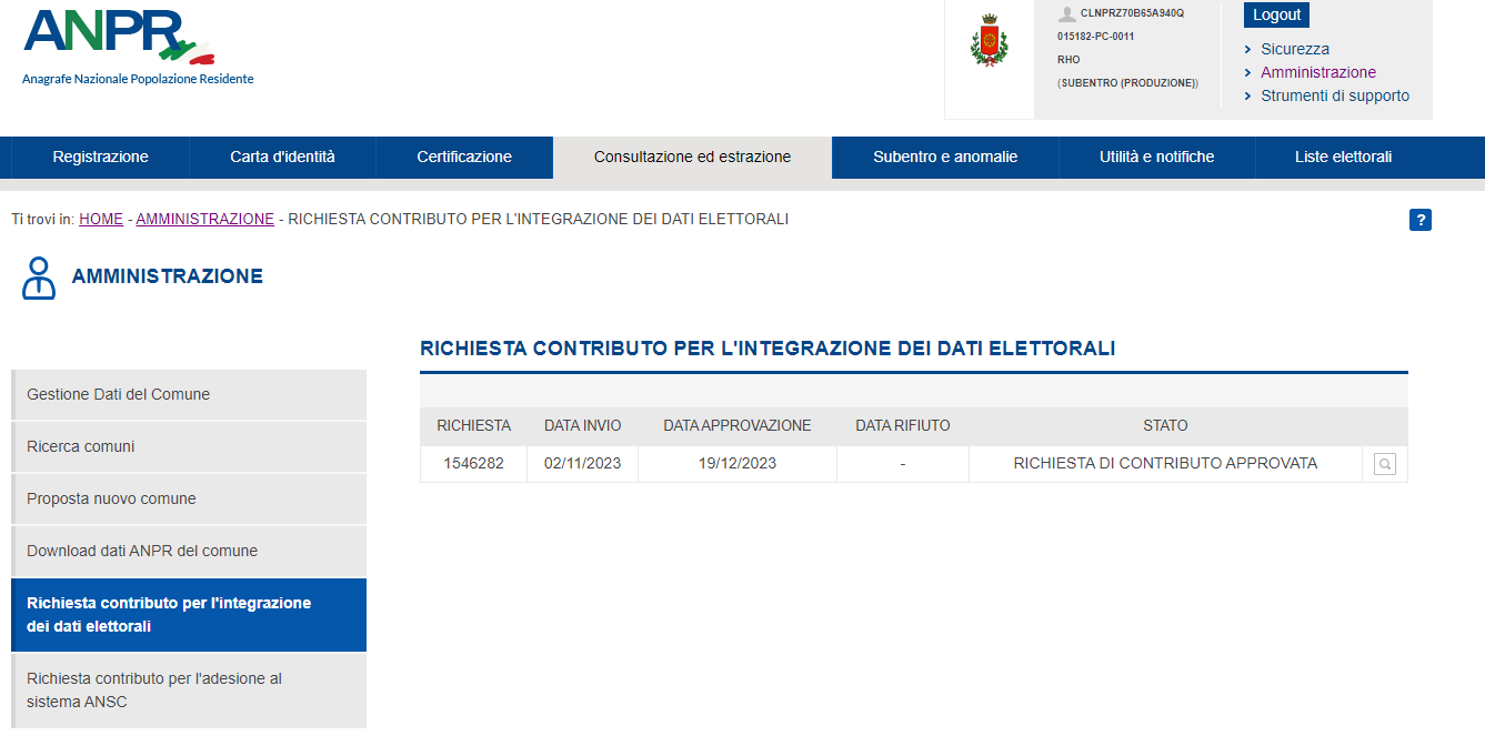 Integrazione nell’ANPR delle Liste elettorali e dei dati relativi all’iscrizione nelle liste di sezione di cui al D.P.R. 20 marzo 1967, n. 223 per la realizzazione dell’intervento PNC - A.1.1 Rafforzamento Misura PNRR M1C1 - Investimento 1.4: “Servizi digitali e esperienza dei cittadini” - Finanziato con risorse del FONDO COMPLEMENTARE AL PNRR