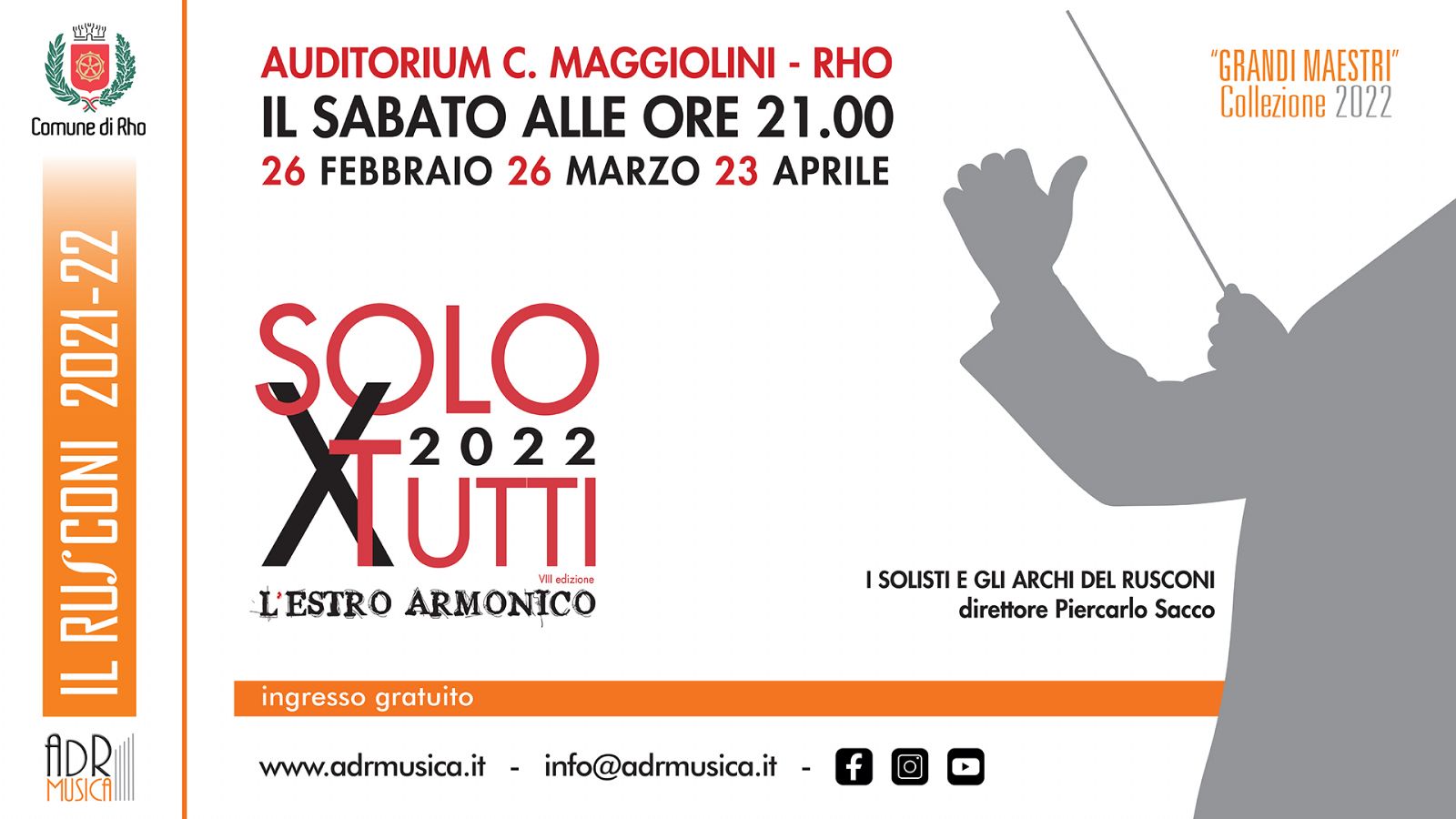 Nella magnifica cornice dell’Auditorium Carlo Maggiolini, spazio dalla splendida acustica di 240 posti complessivi, ritorna L’Estro armonico, stagione musicale ideata e curata da Marco Pisoni e giunta alla VIII edizione. I Solisti e Gli Archi del Rusconi, concertati e diretti da Piercarlo Sacco, presentano nel 2022 SOLOXTUTTI.
