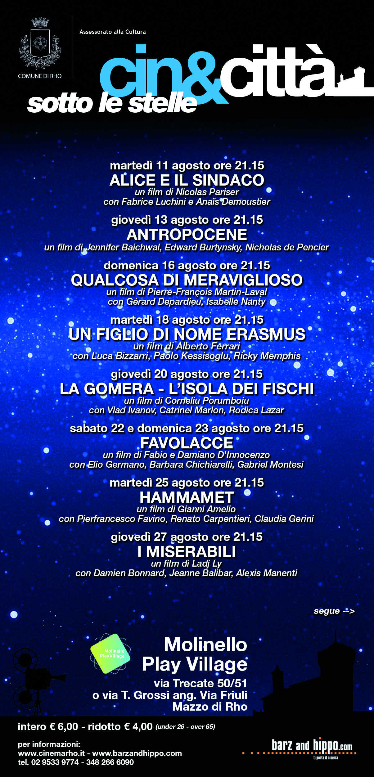 Ancora 2 titoli previsti fino al 16 agosto ed è già arrivata la prima parte della rassegna proposta da Comune di Rho in collaborazione con Barz and hippo al Molinello Play Village da Ferragosto a fine settembre. Sono film di prima visione, recenti e classici, e un paio di ripetizioni per via del maltempo o perché non eravate riusciti a entrare tutti.