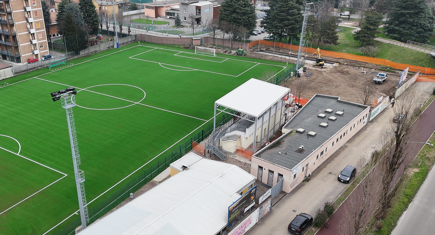 Grazie all’importante finanziamento del PNRR è previsto un vero e proprio restyling della struttura di via De Gasperi, articolato in due lotti: il primo (Lotto A) comprende la realizzazione di tre nuovi campi polifunzionali coperti, con relativi servizi e spogliatoi, e la realizzazione di un nuovo campo in erba sintetica, dove adesso c’è un campo da calcio in erba naturale.