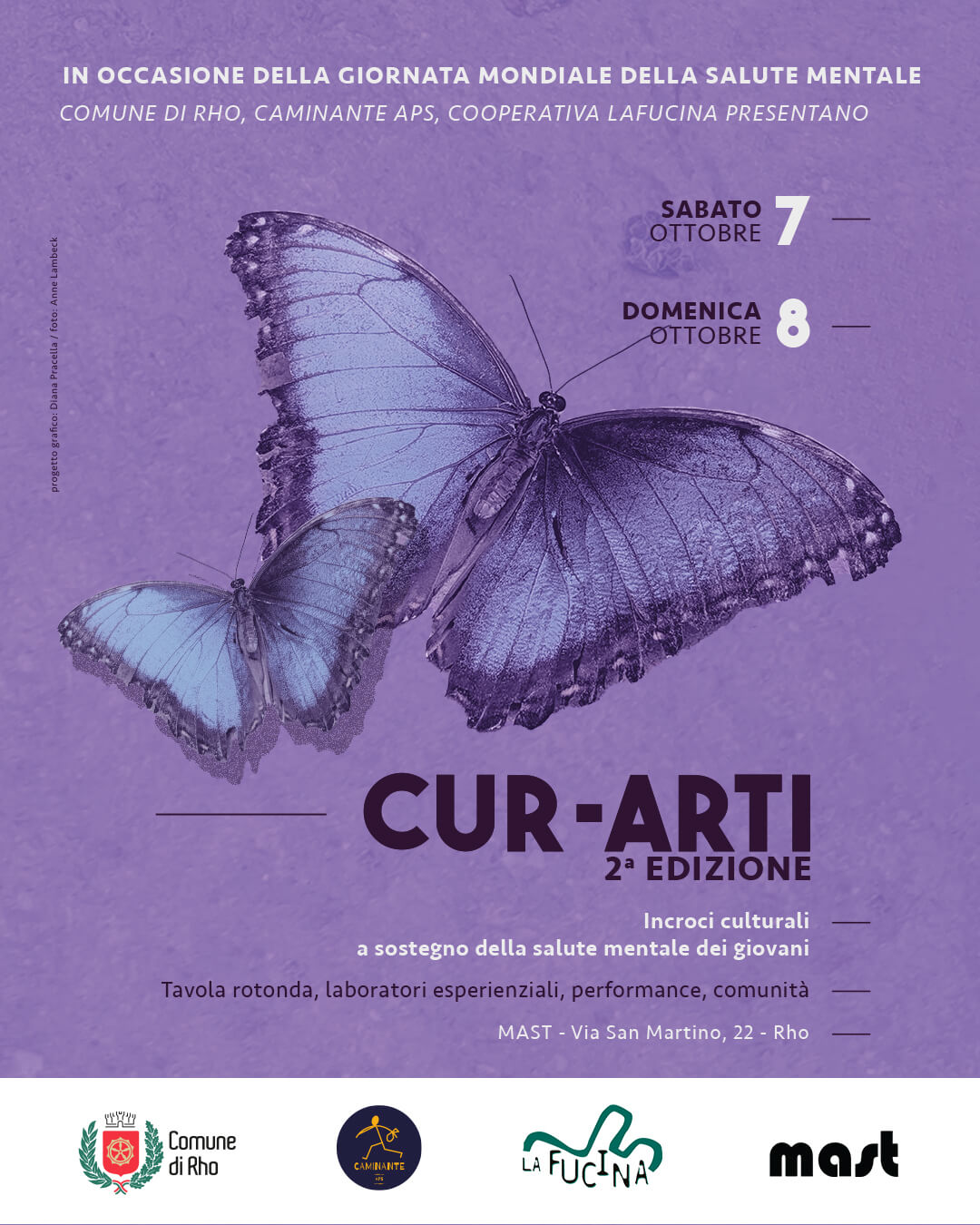Cur-Arti: Incroci culturali a sostegno della salute mentale dei giovani è una manifestazione pubblica organizzata dal Comune di Rho Assessorato alle Politiche sociali in occasione della Giornata mondiale della salute mentale. Questa seconda edizione si svolgerà il 7 e 8 ottobre 2023 coinvolgendo cittadine e cittadini del territorio, realtà del terzo settore, professionisti dei settori sociale, artistico-culturale, sanitario. L'iniziativa, promossa insieme a Caminante APS e alla Cooperativa Sociale LaFucina, pone l’attenzione su due focus specifici: il tema della salute mentale connesso alle giovani generazioni e il tema delle arti come possibile dispositivo di cura intesa nel suo senso più ampio e trasversale.