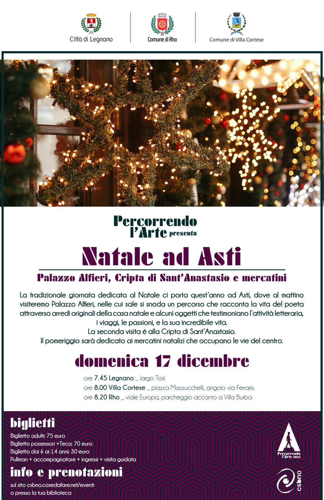 La tradizionale giornata dedicata al Natale, ci porta quest'anno ad Asti, dove al mattino visiteremo Palazzo Alfieri, nelle cui sale si snoda un percorso che racconta la vita del poeta attraverso arredi originali della casa natale e alcuni oggetti che testimoniano l’attività letteraria, i viaggi, le passioni, e la sua incredibile vita.