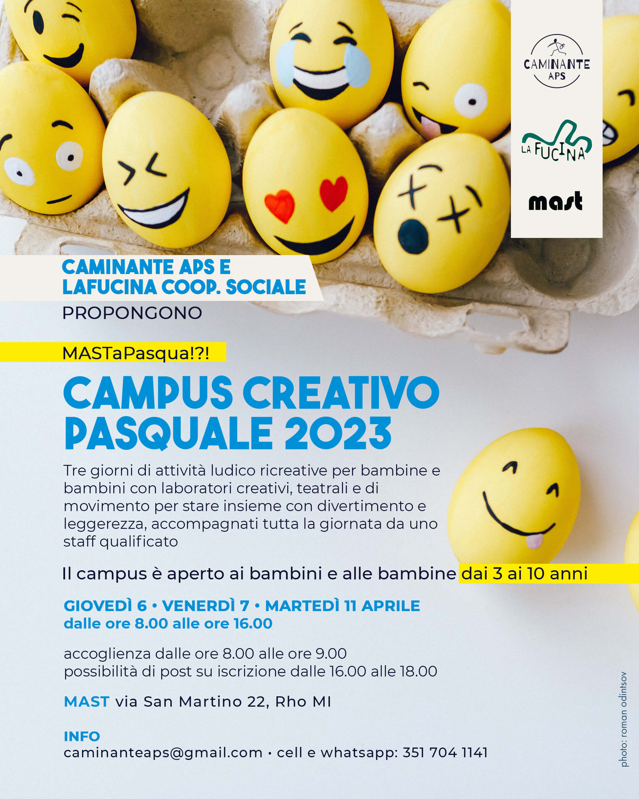 Caminante APS e LAfucina Cooperativa Sociale propongono un Camps creativo pasquale per i bambini e le bambine dai tre ai dieci anni presso il Mast di Via San Martino, 22.