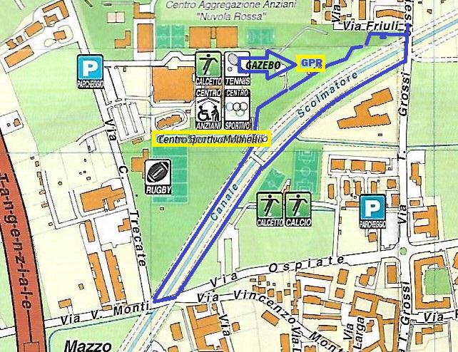 Qui di seguito il programma definitivo della mattinata e in foto la piantina del percorso di staffetta ricavato con partenza ed arrivo presso il Molinello Play Village.