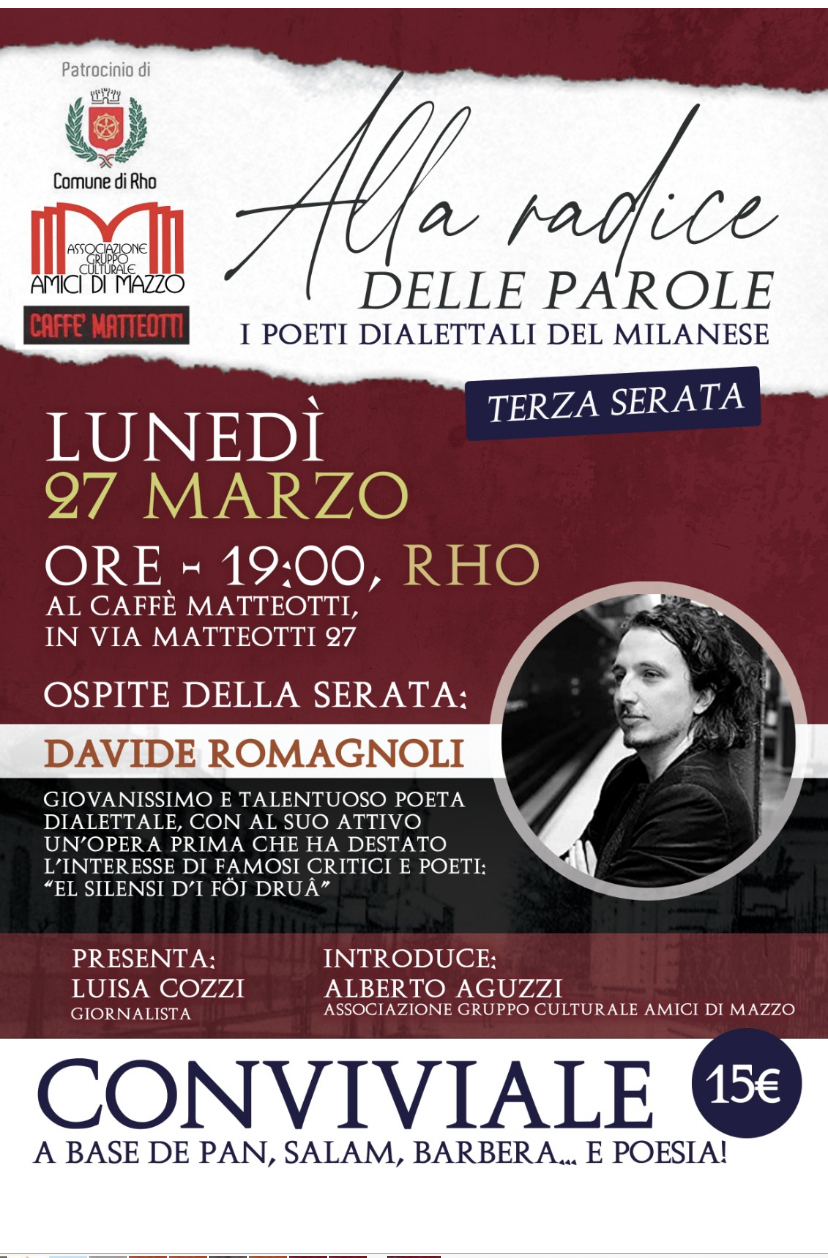 Rho. L’Associazione Gruppo Culturale Amici di Mazzo (AGCAM) è felice di invitare la cittadinanza al terzo appuntamento della prima Rassegna di Poesia Dialettale “Alla radice delle parole”, che vedrà protagonisti alcuni dei più noti poeti performativi del territorio milanese.