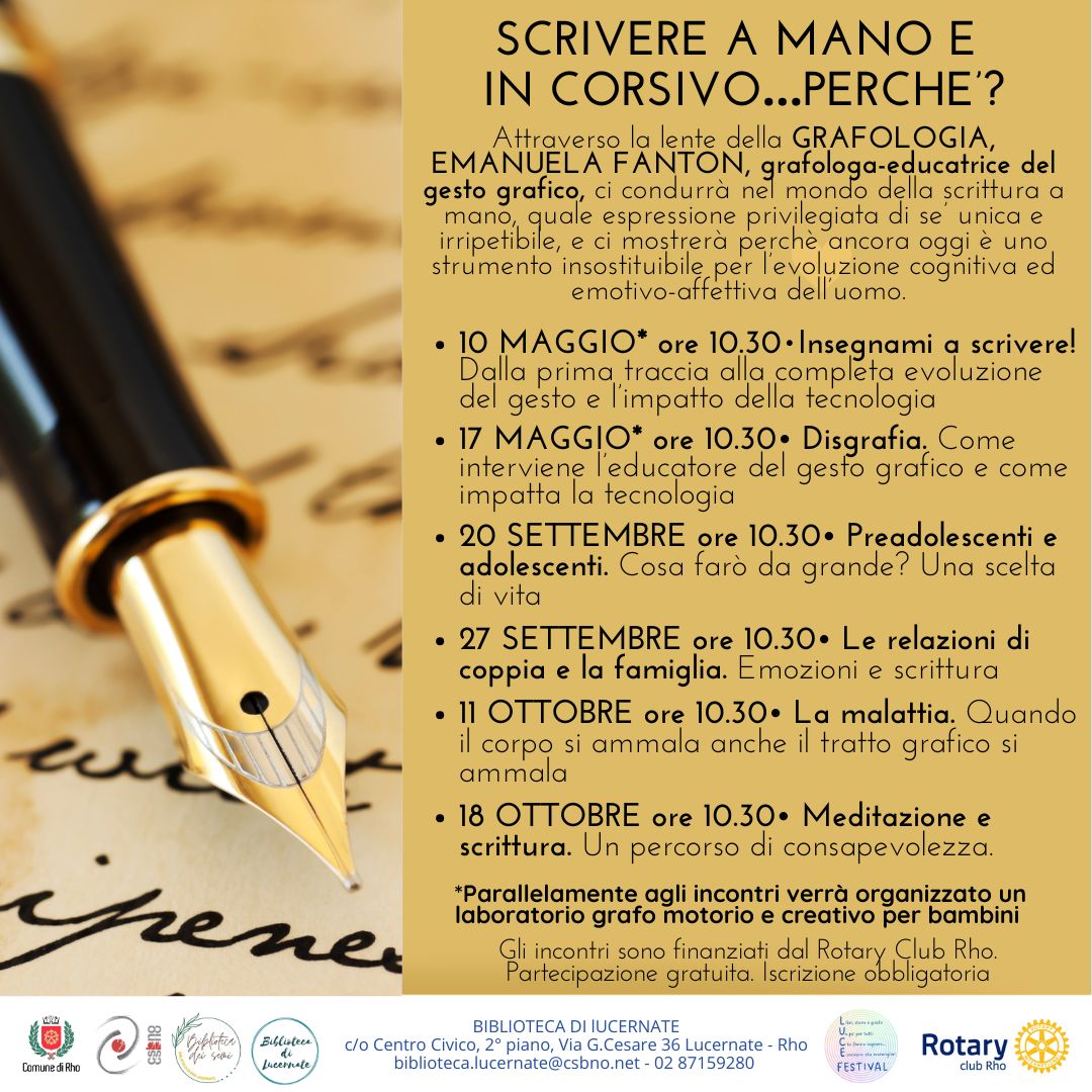 La Biblioteca di Lucernate  ha organizzato  e promosso  alcuni incontri di grafologia pensati per insegnanti, educatori e genitori, e per tutti coloro che sono interessati ad approfondire la materia.