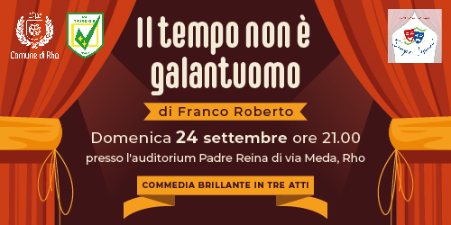 La Compagnia teatrale Sempre Insieme e la sezione calcio ASD Victor Rho, con il patrocinio del Comune di Rho, hanno organizzato per domenica 24 settembre presso l'auditorium di Via Meda una serata a scopo benefico. Verrà rappresentata la commedia teatrale brillante in tre atti "Il tempo non è galantuomo". L'ingresso sarà gratuito con offerta libera; l'intero incasso sarà devoluto a Rho Soccorso. Una serata divertente ed al tempo stesso una bella occasione per far sentire a Rho Soccorso il senso di gratitudine da parte di tutta la cittadinanza