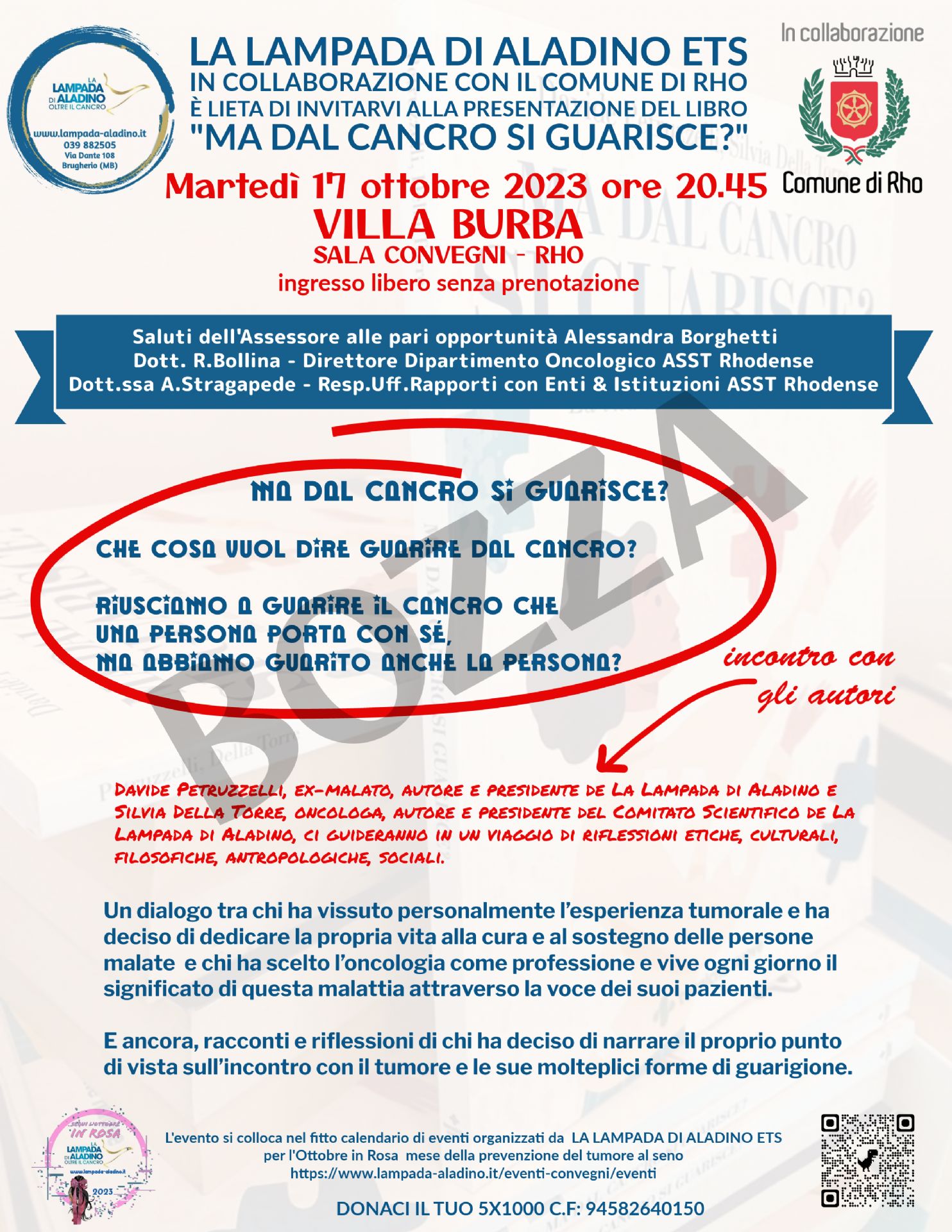 La Lampada di Aladino ETS in collaborazione con Comune di Rho è lieta di invitarvi alla presentazione del libro ”Ma dal cancro si guarisce?"