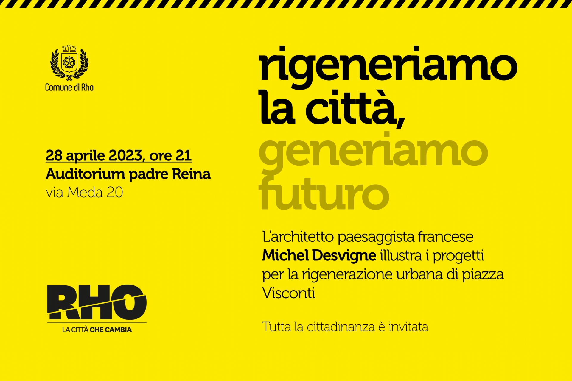 Durante la serata, Desvigne illustrerà il progetto per la rigenerazione urbana di piazza Visconti, uno dei progetti di “Rho la città che cambia”, finanziati con fondi del PNRR - Piano nazionale di ripresa e resilienza. La cittadinanza è invitata a partecipare, in un’ottica di piena condivisione delle iniziative dell’Amministrazione comunale.