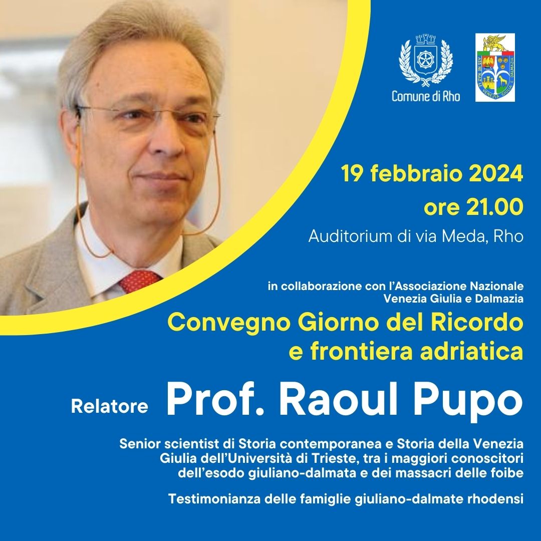 Interverrà il professor Raoul Pupo, senior scientist di Storia contemporanea e Storia della Venezia Giulia dell'Università di Trieste, tra i maggiori conoscitori dell'esodo giuliano-dalmata e dei massacri delle foibe. Sono poi previste le testimonianze di famiglie giuliano dalmate che vivono a Rho da molti anni.