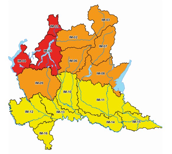 Allerta arancione per rischio idrogeologico e allerta gialla per rischio temporali e rischio idraulico nel Nodo di Milano cui Rho appartiene (codice IM-09 sulla cartina).